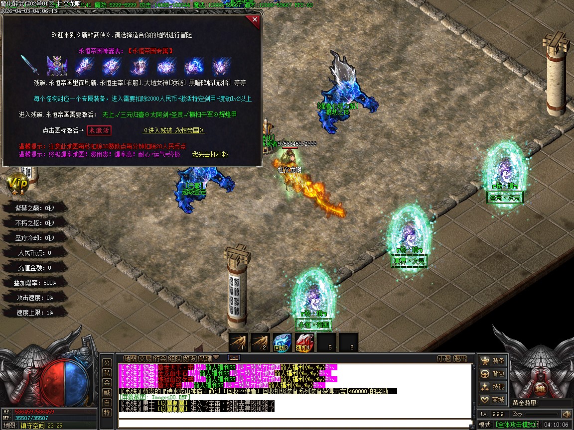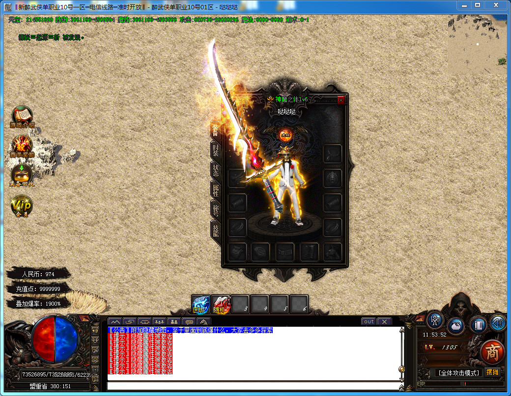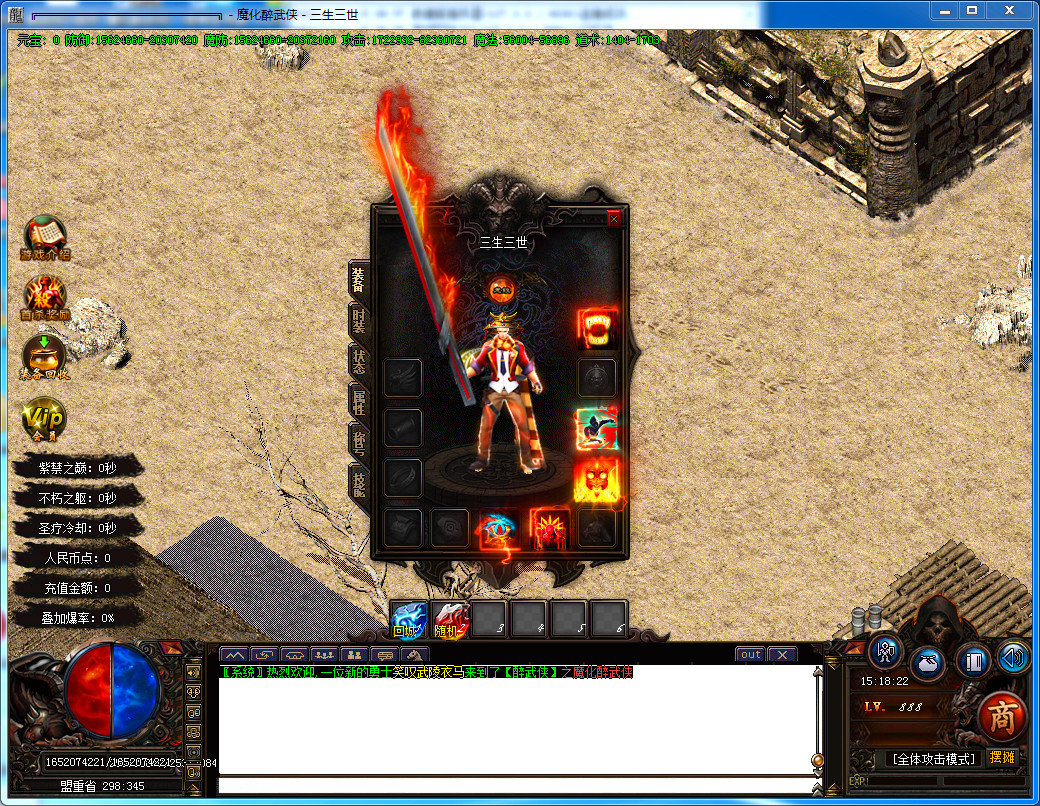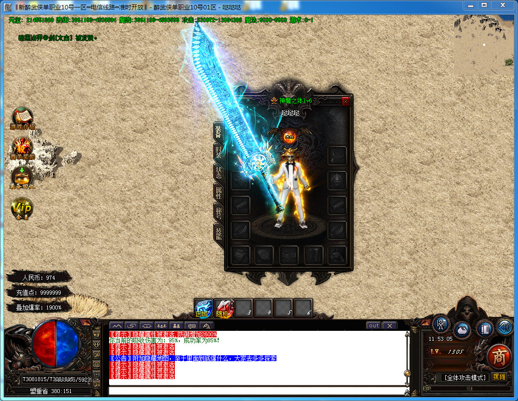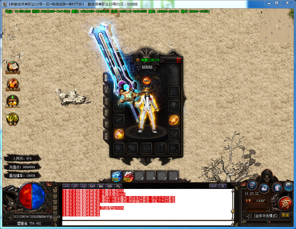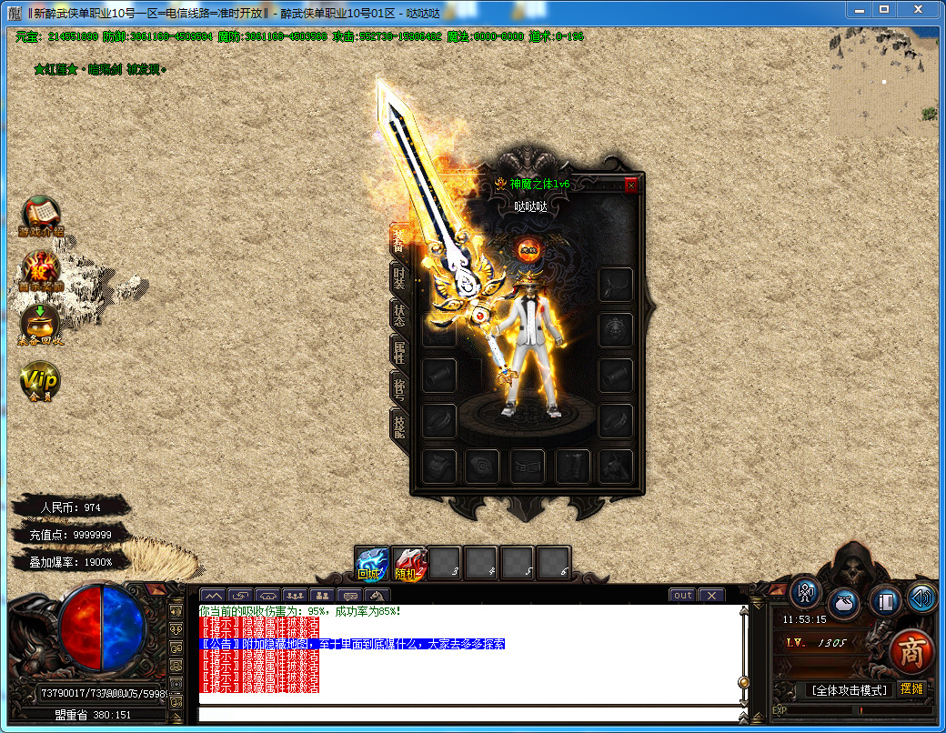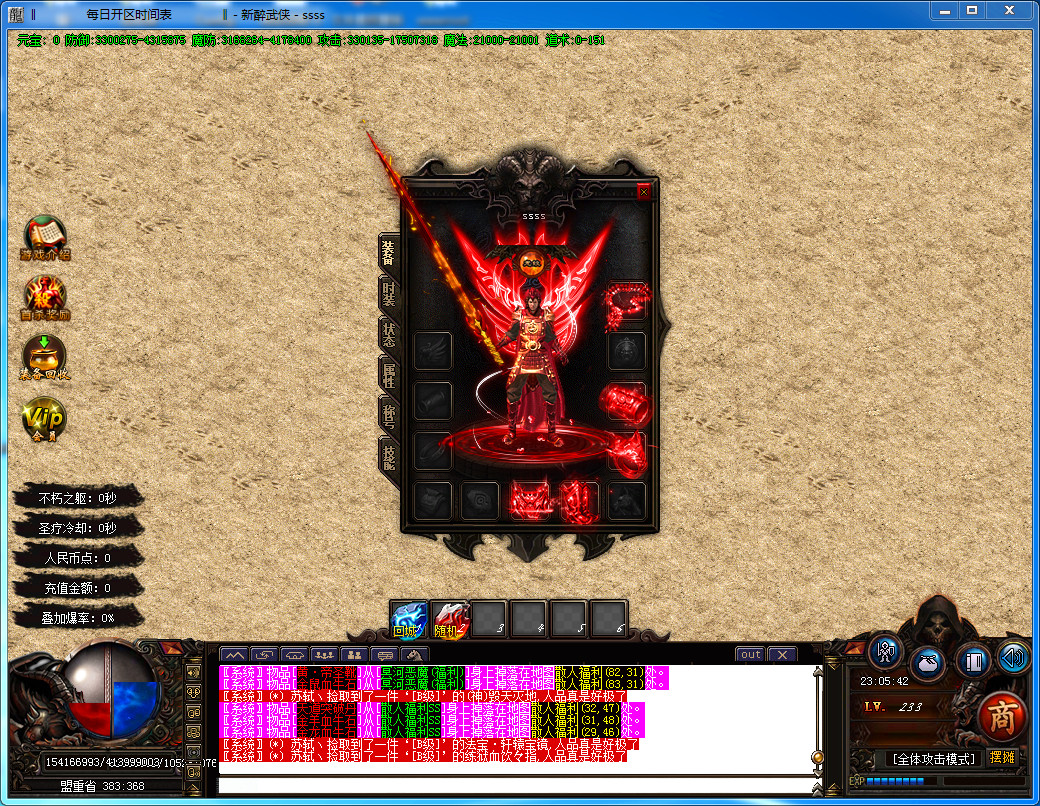 6.新增赞助六层 每3小时刷新一只人型怪 赞助·小霸王 每个新区只刷3次 有极高的概率爆出剑甲