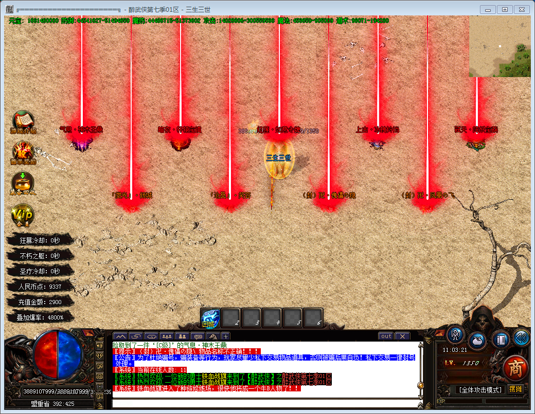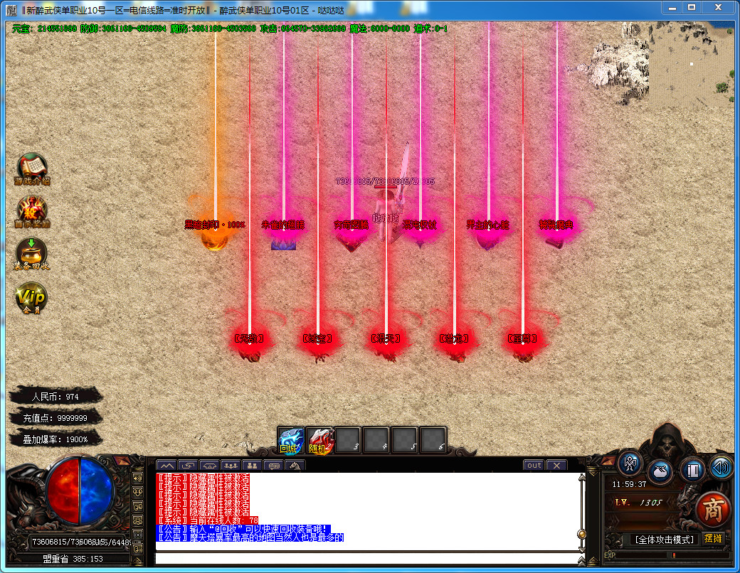 6.新增赞助六层 每3小时刷新一只人型怪 赞助·小霸王 每个新区只刷3次 有极高的概率爆出剑甲